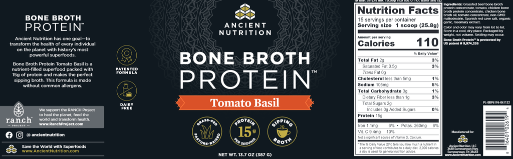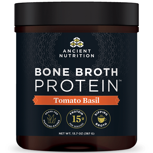 Introducing Ancient Nutrition Bone Broth Protein Tomato Basil—a superfood protein powder with body-supporting protein and more! It’s made from real beef bone broth and chicken bone broth.
