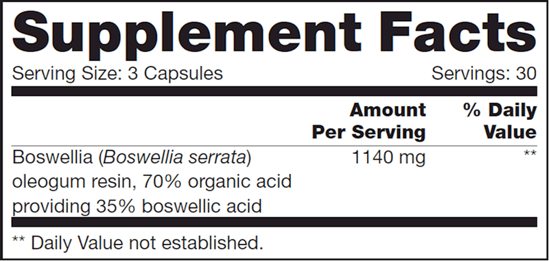 Boswellia SAP provides a standardized dose of Boswellia serrata oleogum resin extract, used in traditional practices for centuries for a number of concerns. Boswellic acids, especially 11 keto-β boswellic acid (KBA) and 3 O acetyl-11 keto- β boswellic acid (AKBA) are the main active constituents responsible for the healthy inflammatory balance effects of B. serrata. Boswellia has been extensively studied for maintaining healthy inflammatory responses and reducing pain associated with occasional exercise or overuse.*