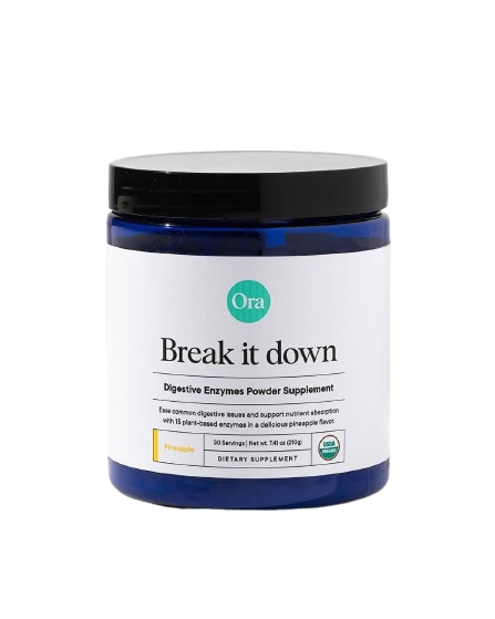 Ora Organic's broad-spectrum enzyme blend works throughout your stomach and small intestines to help break down a wide range of nutrients like lactose, gluten, beta-glucans, and protein. All 15 different enzymes are plant-based and can support you whether you have issues with dairy, grains, or fatty foods. They also include 1 billion probiotics to help promote the health of your intestinal wall*, which can get damaged when foods are poorly digested. The delicious pineapple flavor makes it a treat to take!