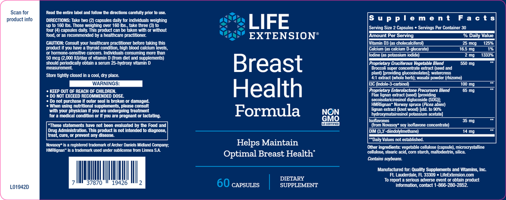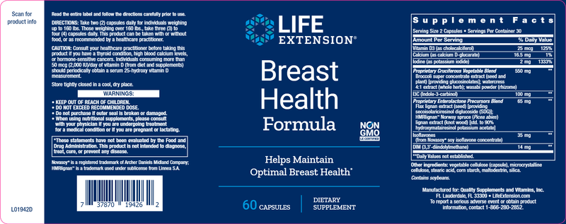Life Extension's Breast Health Formula is a broad-spectrum formula that contains powerful nutrients to help support healthy estrogen activity and detoxification to preserve women’s breast health.