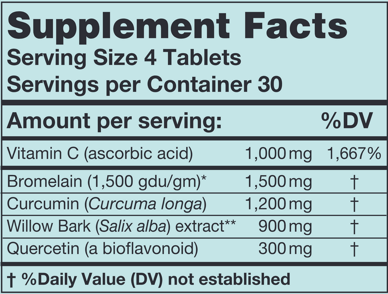 BromInj is a powerful formulation containing high potencies of proteolytic enzymes, botanical extracts, quercetin, and vitamin C to support homeostasis during the healing process. In addition to bromelain for proteolytic activity, BromInj contains purified curcumin from turmeric, known for its antioxidant activity, and willow bark, a natural source of salicylates. Vitamin C and quercetin, a bioflavonoid, are included to facilitate normal reparative activities in various body tissues.* BromInj works best when taken on an empty stomach.