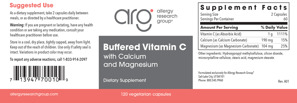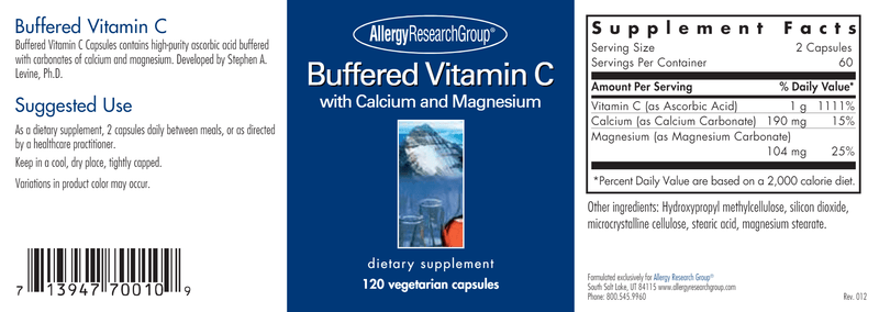 Buffered Vitamin C Capsules contains high-purity ascorbic acid buffered with carbonates of calcium and magnesium. Developed by Stephen A. Levine, Ph.D.