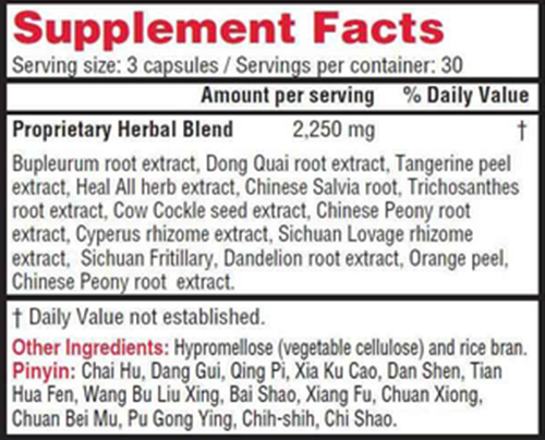 This formula contains bupleurum, dong quai, and other herbs that vitalize qi and support blood circulation. Helps to resolve heat and toxins.