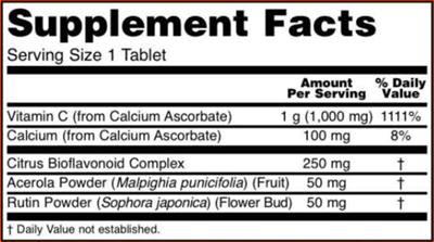 Vitamin C is a water soluble nutrient well known for its vital role in the immune system. Vitamin C is also necessary for the production of collagen (a structural protein in connective tissue) and is therefore important for skin, bone, and joint health. Vitamin C is needed for amino acid metabolism, neurotransmitter synthesis, and the utilization of many nutrients, such as folic acid and iron. It is also a highly effective antioxidant that can help maintain healthy tissues by neutralizing free radicals generated during normal metabolism and exposure to environmental stressors. This product supplies calcium ascorbate, a buffered form of vitamin C that is bioavailable and non-acidic; it is enhanced with bioflavonoids, which work synergistically with vitamin C.