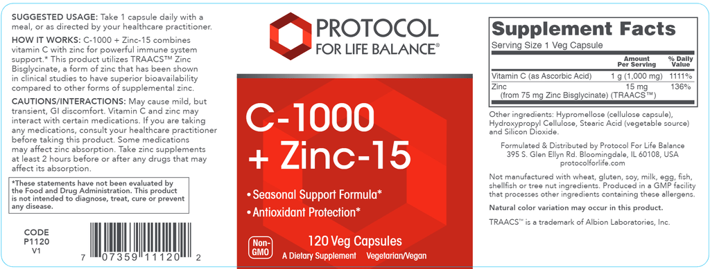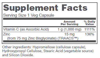 C-1000 + Zinc-15 combines vitamin C with zinc for powerful immune system support.* This product utilizes TRAACS™ Zinc Bisglycinate, a form of zinc that has been shown in clinical studies to have superior bioavailability compared to other forms of supplemental zinc.