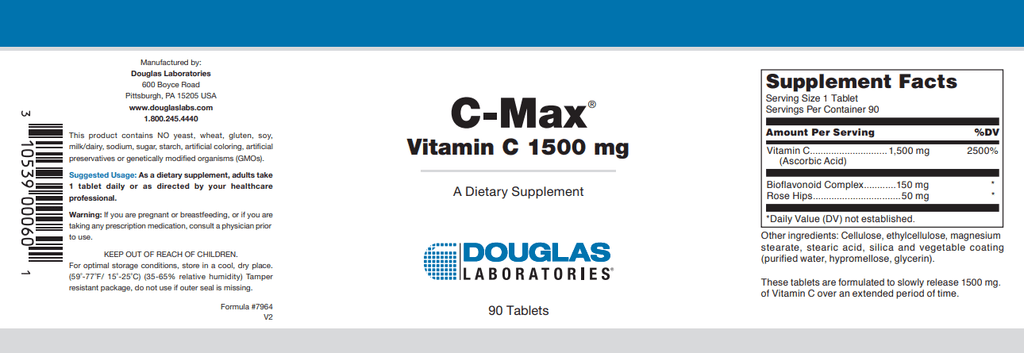 C-Max® may be a useful dietary supplement for individuals wishing to supplement their diet with high potency Vitamin C in a slow release tablet.