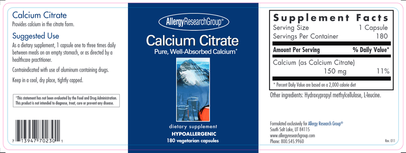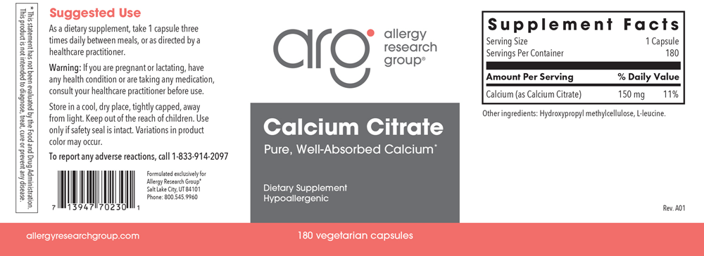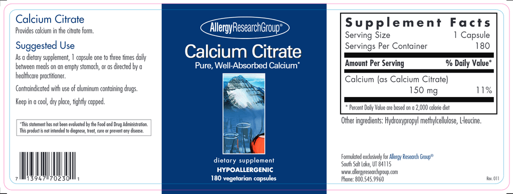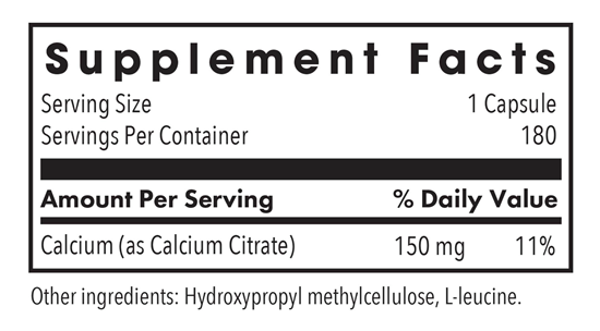 Calcium is an important macromineral. Calcium in the citrate form is well absorbed.* Each capsule contains 150 mg of calcium.