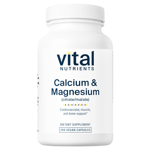 Calcium/Magnesium (citrate/malate) work together to support a healthy cardiovascular system.* Calcium is necessary for healthy teeth and bones, and Magnesium supports muscle and nerve function and helps the body to metabolize and absorb calcium.* Calcium maintains healthy heart function and normal colonic cell growth, and also helps to maintain normal mood during the menstrual cycle.* Calcium and Magnesium have been shown to support a healthy mood and demeanor during PMS.* Calcium/Magnesium citrate/malate is one of the most bioavailable forms of these two minerals.*