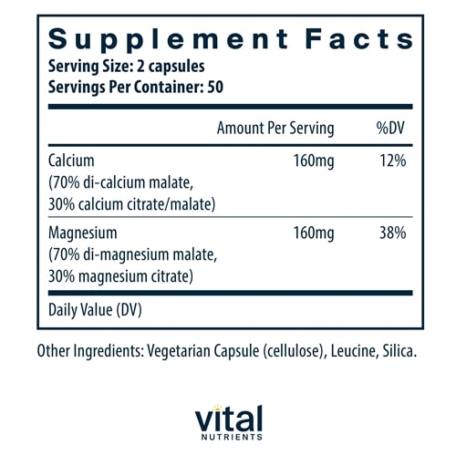 This product has been discontinued. Our recommended substitute is Calcium Magnesium (citrate/malate) by Pure Encapsulations.