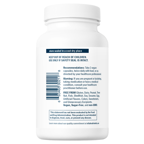 Free of artificial flavors, colors, sweeteners, excipients (fillers, coatings, binders), and sugar. Non-GMO.