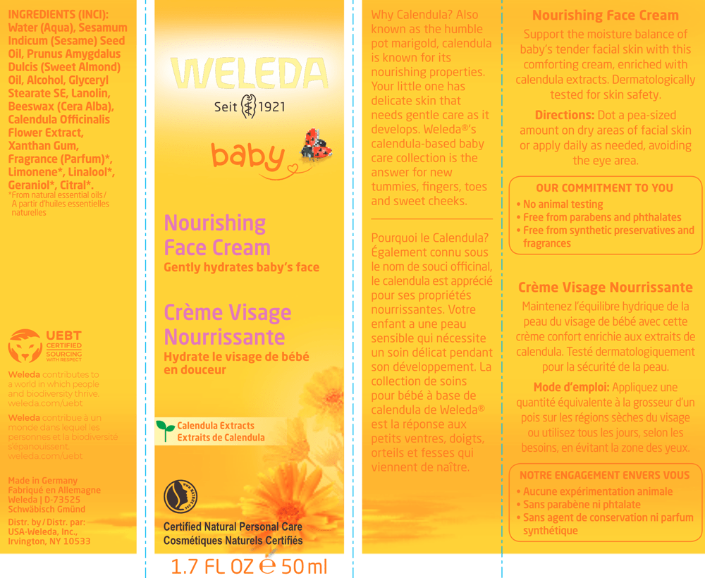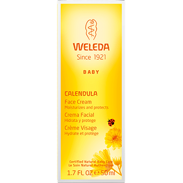 There’s a lot of learning when baby first faces the world – and baby skin is developing, too. Very young skin is more fragile than grown-up skin. Skin needs loving care. Calendula Face Cream certified natural by NATRUE includes soothing calendula extract that wraps like protective blanket around tender facial skin, while skin-friendly lanolin and organic almond oil moisturize and shelter. Easy to apply to the face and quickly absorbed. Moms and midwives trust Weleda to bring the harmony of nature to baby care.