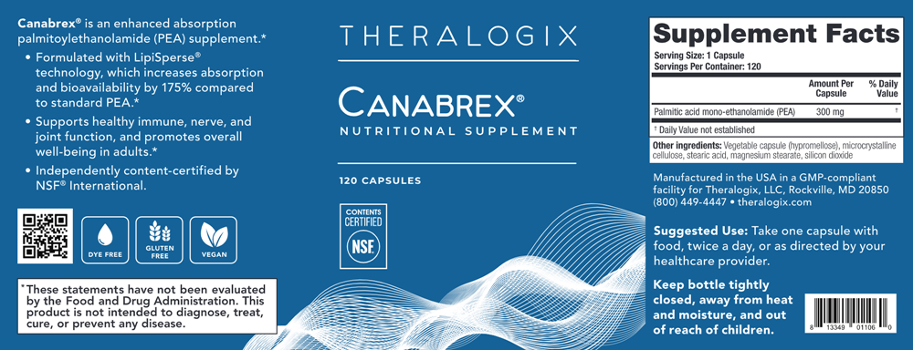 Enjoy the benefits of CBD without the cannabis. Canabrex contains PEA (palmitoylethanolamide), which is considered part of the cannabinoid family but is not from cannabis. PEA is found naturally in certain foods and produced in your body. Canabrex has been formulated to promote immune and sleep health and maintain healthy nerves and joints throughout the body.*