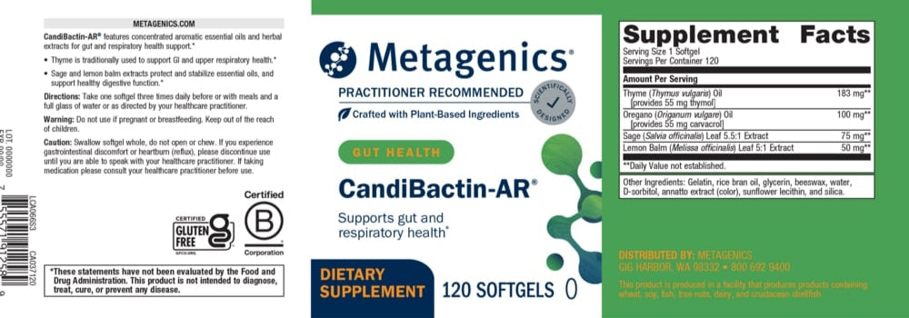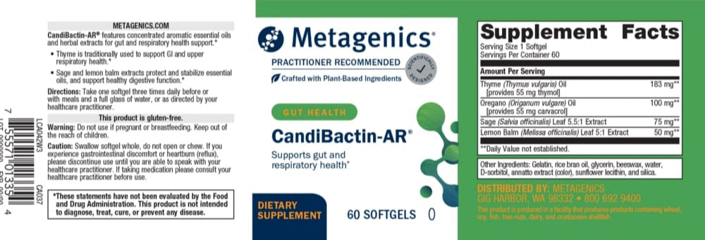 CandiBactin-AR® is a blend of concentrated essential oils and herbal extracts from the aromatic mint family designed to support intestinal microbial balance and healthy digestion.*