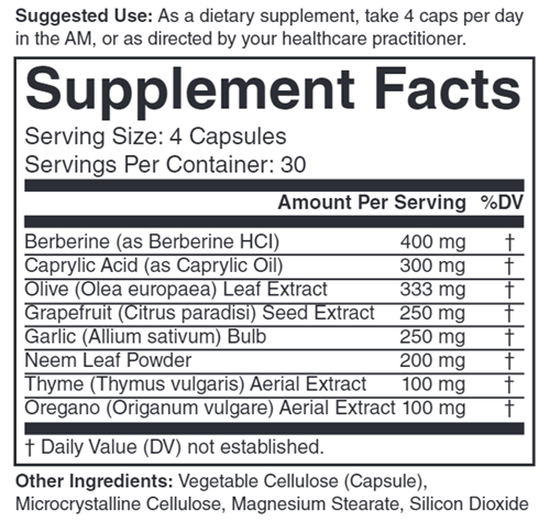Suggested Use: As a dietary supplement, take 4 caps per day in the AM, or as directed by your healthcare practitioner.