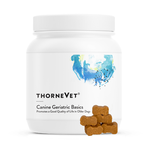 An older dog has increased nutritional requirements for specific nutrients that usually may not be provided even by a balanced diet. Canine Geriatric Basics is formulated with several amino acids that support the health of an older dog. This ThorneVET formula also contains flavonoids, CoQ10, and other potent antioxidants. To support brain health, Canine Geriatric Basics enhances neurotransmitter production and positively affects neuronal membranes.