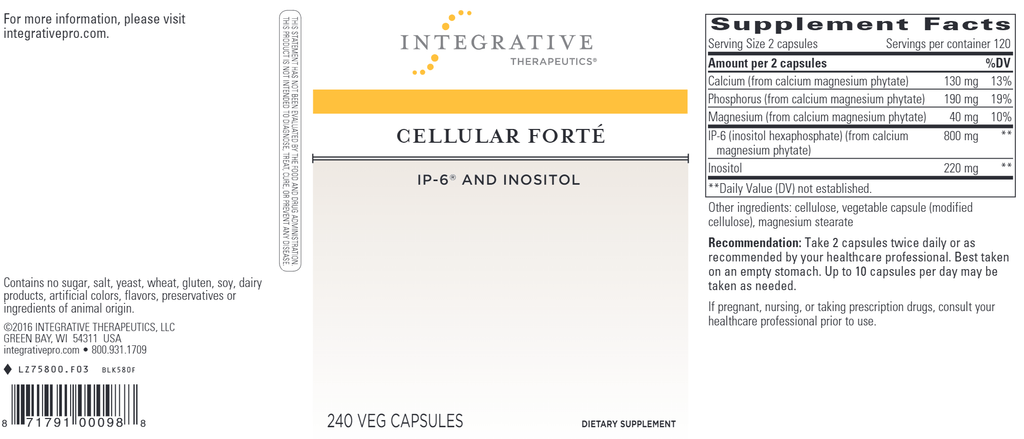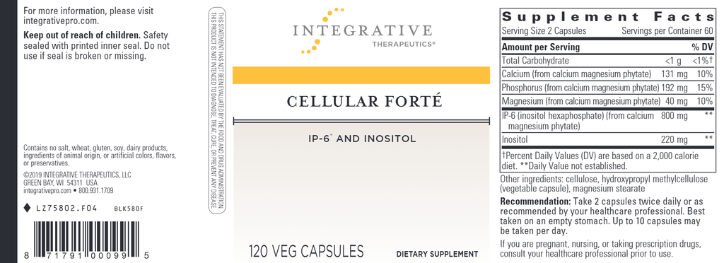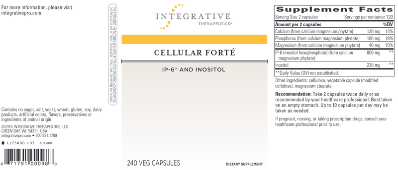 Cellular Forté with IP-6® and Inositol provides support for the immune system.* One molecule of IP-6 plus one molecule of inositol yield two molecules of IP-3. The combination helps support natural killer-cell activity.*