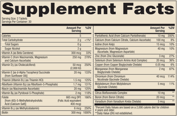 Suggested Use: Children 4 years and older, as a dietary supplement, take two (2) chewable tablets daily.