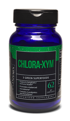 Organic green superfoods and digestive enzyme therapy with Chlora-xym: