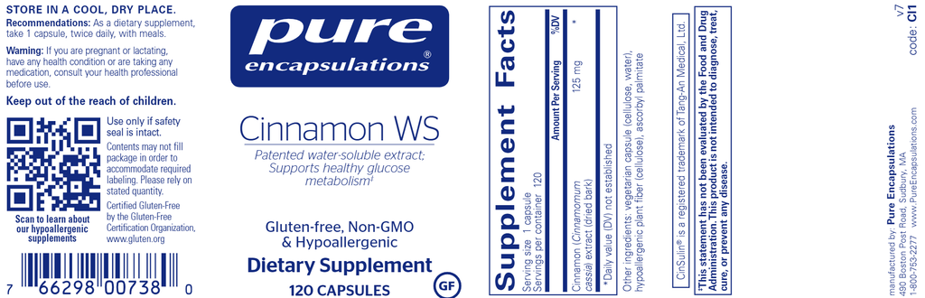 Cinnamon WS is a water-soluble dietary supplement that supports healthy glucose metabolism and may contain antioxidant properties. Cinnamon WS may also provide support for glucose utilization in skeletal muscle cells.
