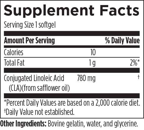 Conjugated Linoleic Acid (CLA) is a naturally occurring fatty acid shown to be useful in supporting normal fat metabolism, healthy blood sugar metabolism, and a normal inflammatory response. CLA also has strong antioxidant properties.* This product is a rich source of CLA, standardized to contain a minimum 78% conjugated linoleic acid as cis-9, trans-11, trans-10, and cis-12 isomers in a 50:50 ratio.