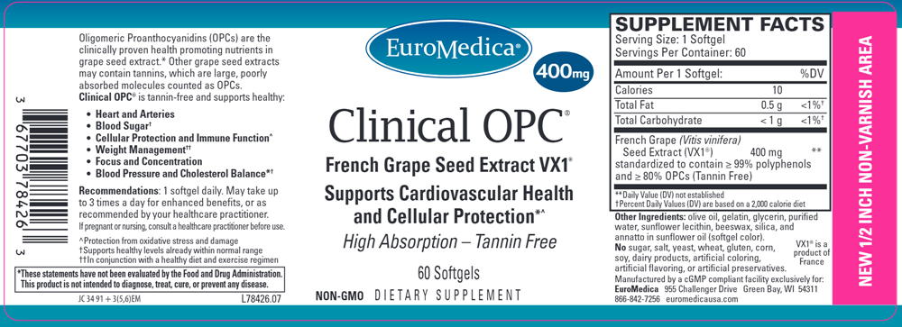 Oligomeric Proanthocyanidins (OPCs) are the clinically proven health promoting nutrients in grape seed extract. Other grape seed extracts may contain tannins, which are large, poorly absorbed molecules counted as OPCs. Clinical OPC® is tannin-free and supports healthy: