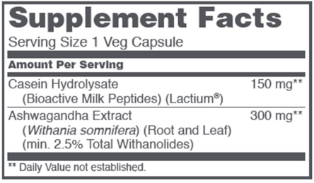 Clinical Stress Relief features Lactium®, a milk protein derivative. Lactium® has been shown to support healthy cortisol levels and thus, can help to relieve the symptoms of stress from everyday life.* In addition, it can help to bring on sleep more quickly, maintain uninterrupted sleep, and promote better overall sleep quality.* Ashwagandha has been included as an “adaptogen”, which helps the body adapt to typical daily stress.*