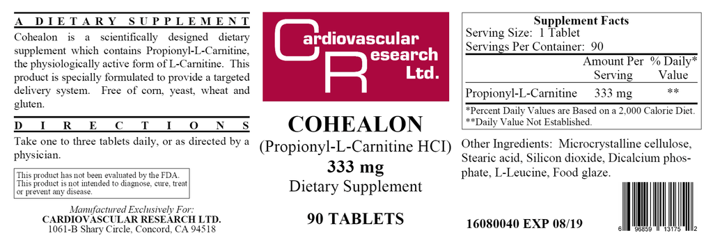 Cohealon-IB is a scientifically designed dietary supplement which contains Propionyl-L-Carnitine, the physiologically active form of L-Carnitine. This product is specially formulated to provide a targeted delivery system.