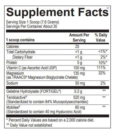 Collagen Hydrolysate as FORTIGEL®, is backed by more than fifteen studies, provides bioactive collagen peptides (BCPs), which contain high concentrations of specific peptides that comprise connective tissue. The precise length of the short-chain peptides and their low average molecular weight allows easy absorption, transport, and accumulation to target connective tissue. FORTIGEL® provides 5 g hypoallergenic protein per serving from a sustainable protein source without the risk of oxalate kidney stones from higher-dose collagen products. Clinical studies on FORTIGEL® demonstrate joint and tendon health benefits.
