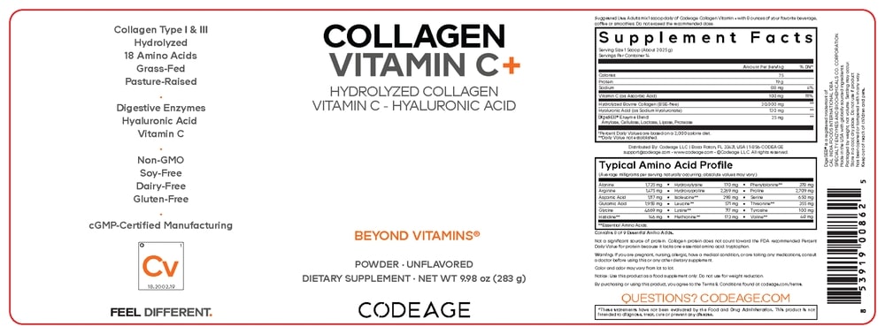 Codeage Hydrolyzed Collagen Peptides + offers 20g of grass-fed collagen type I & III per serving with 100 mg of vitamin C, hyaluronic acid, digestive enzymes, and amino acids. The bovine collagen protein powder in this formula is grass-fed, pasture-raised, and hydrolyzed to help make it easier to digest and contains 100 mg of vitamin C per serving. This hydrolyzed collagen powder also features hyaluronic acid,18 amino acids, and DigeSEB enzyme blend including amylase, cellulase, lactase, lipase, and protease enzymes all-in-one.