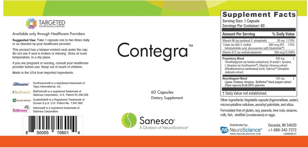 Ingredients support inhibitory and excitatory neurotransmitter production, adrenal and thyroid function, and methylation pathways.* It also supplies cofactor and/or phosphorylated forms of B vitamins critical for proper neurotransmitter function.*