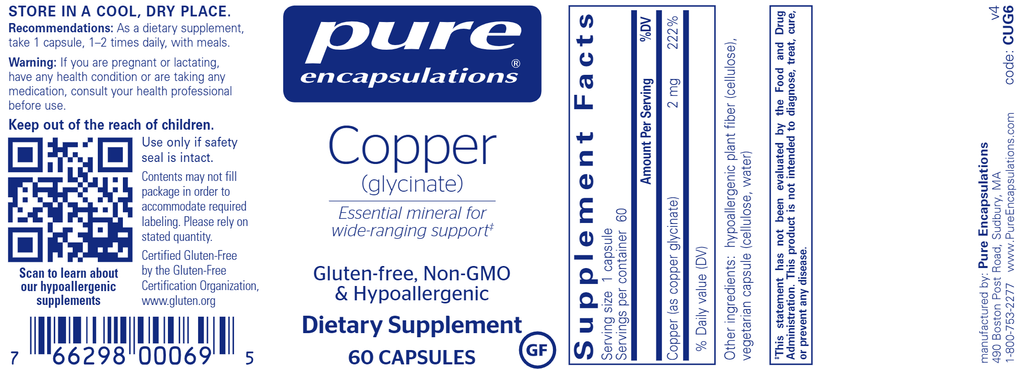 Copper glycinate is a dietary supplement that helps activate enzymes that are important to energy metabolism. Copper may also facilitate iron absorption to help formulate hemoglobin and red blood cells.*