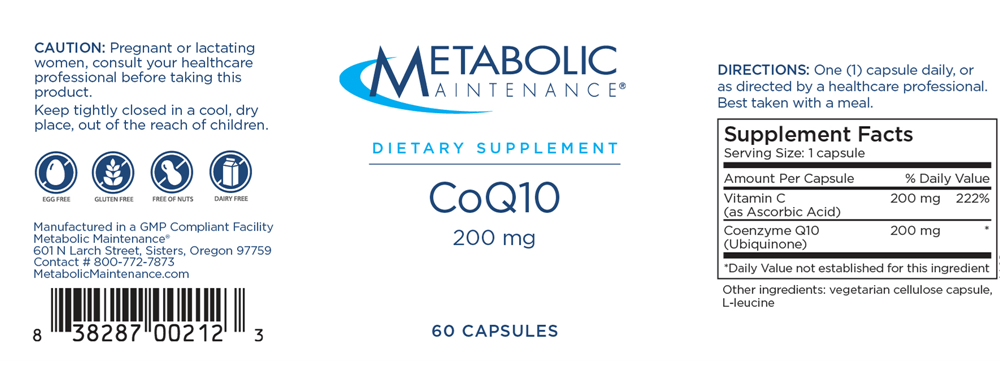 Source Materials: Metabolic Maintenance uses only natural, all-trans CoQ10 made by fermentation in the USA or Japan. Vitamin C is derived from corn sorbitol. L-leucine is made by fermentation of cane sugar. Cellulose for capsules is derived from softwood tree pulp. All ingredients are vegan and non-GMO.
