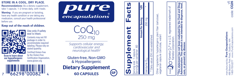 CoQ10 provides support to enhance energy levels within cells to provide increased energy and exercise stamina. Enhanced energy from CoQ10 promotes nutritional support for the cardiovascular system.
