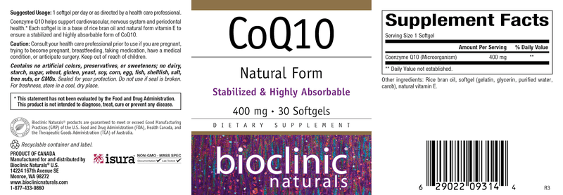 100% Natural CoQ10 · Stabilized & Highly Absorbable · 400 mg