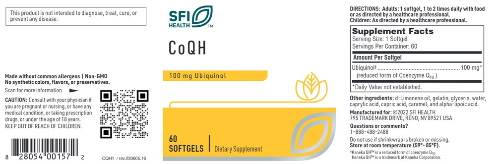 Two beneficial forms of CoQ10, ubiquinone, and ubiquinol, are continually recycled in the body. Ubiquinol acts as a powerful antioxidant in mitochondria and lipid membranes.† Sufficient amounts of both forms are needed for efficient ATP production. Normally, ubiquinone is efficiently reduced to ubiquinol during absorption or shortly after entering the bloodstream. However, this ability declines with age and may be compromised in certain individuals. As ubiquinol can be directly utilized by the body, CoQH™ is a good alternative for those who may have difficulty converting ubiquinone to ubiquinol. Pure ubiquinol is solubilized in d-limonene oil and stabilized with natural emulsifying agents.