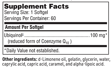 ‡Kaneka QH™ reduced form of coenzyme Q10. Kaneka QH™ is a trademark of Kaneka Corporation.