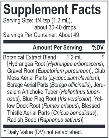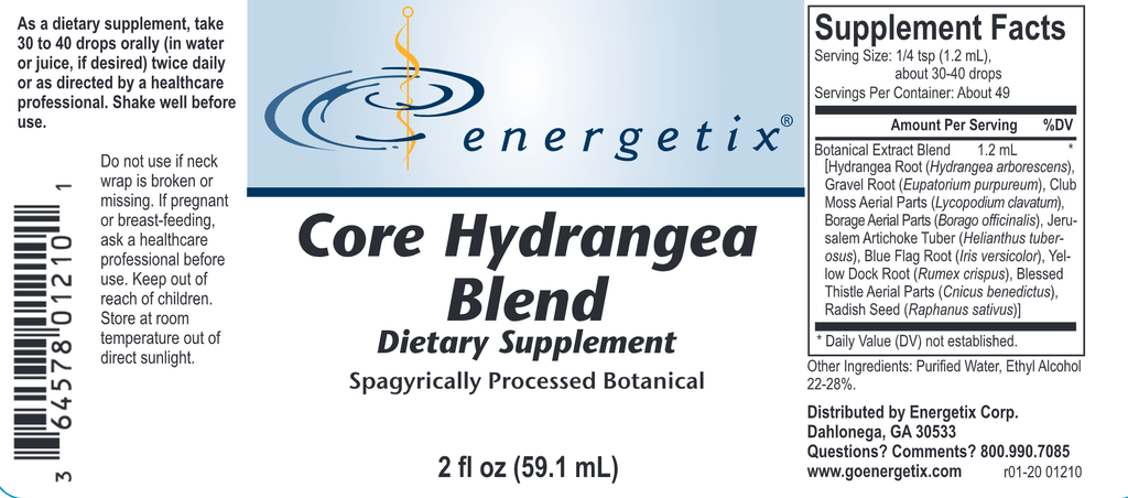 Core Hydrangea Blend is a spagyrically processed, comprehensive botanical blend anchored by hydrangea root (Hydrangea arborescens) with Jerusalem artichoke, blessed thistle, blue flag root, and other complementary herbs to support gallbladder health, biliary tract function, healthy bile production and flow.