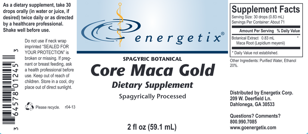 Core Maca Gold is a botanical extract made from the adaptogenic, Peruvian maca root designed to support normal sexual function in both men and women. Maca root also helps maintain normal hormone balance and reproductive function.