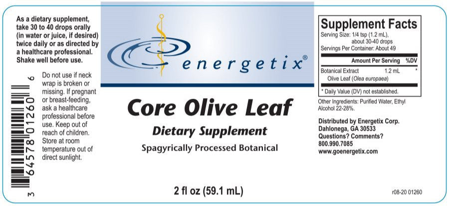 Core Olive Leaf is a popular botanical extract designed to help maintain normal immune response and microbial balance. The phenolic compound predominantly found in olive leaf is oleuropein, which helps maintain normal cardiovascular function.