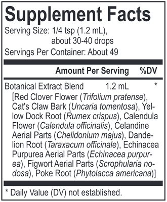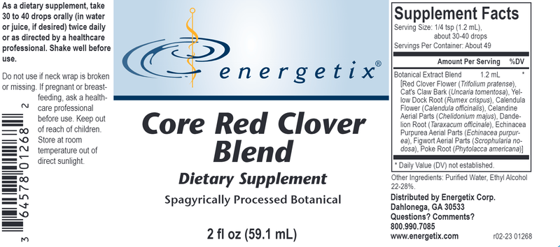 Core Red Clover Blend is a spagyrically processed, comprehensive botanical blend of red clover flower (Trifolium pratense), cat’s claw bark, yellow dock, echinacea, and other complementary herbs that help maintain normal immune health, lymphatic function, red blood cell production, and healthy fatty tissues.
