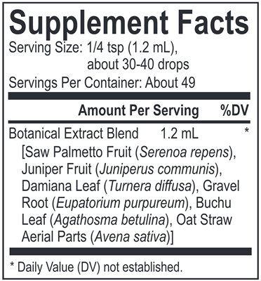 Core Saw Palmetto Blend is a spagyrically processed botanical blend of Serenoa repens (saw palmetto), juniper fruit, damiana leaf, and other complementary herbs to help maintain male reproductive health, prostate gland function, normal libido, and male vitality.
