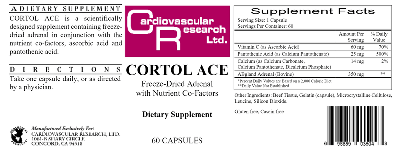 If the adrenal glands are not functioning properly, fatigue and other health concerns can develop.* Cortol Ace by Ecological Formulas is a dietary supplement designed to combat adrenal fatigue and support the ongoing health of the adrenal glands.* Included in the potent combination of ingredients that are featured in Cortol Ace by Ecological Formulas is vitamin C for a strong immune system response, pantothenic acid, one of the B vitamins that encourage the adrenals to produce hormones, and adrenal extract.*