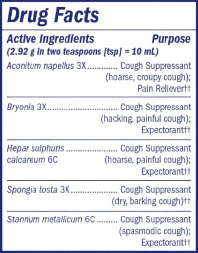 Homeopathic. Non-drowsy cough suppressant and expectorant syrup.†