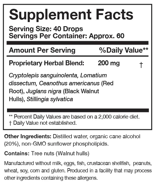Cautions: Lomatium Rash is a rare but bothersome proliferation of raised red spots, not itchy or painful, that usually appears on the torso, and lasts sometimes as long as three weeks after discontinuing use of the herb. It is not immune mediated therefore does not respond to antihistamine or immune suppression such as prednisone. The rash usually only occurs once and does not reappear when lomatium is restarted. When patients slowly work up dose the rash is minimized. Crypto-Plus™ is formulated to reduce the potential of the rash. Lomatium dissectum contains coumarin derivatives, which may increase the risk of bleeding when taken with drugs that increase the risk of bleeding.