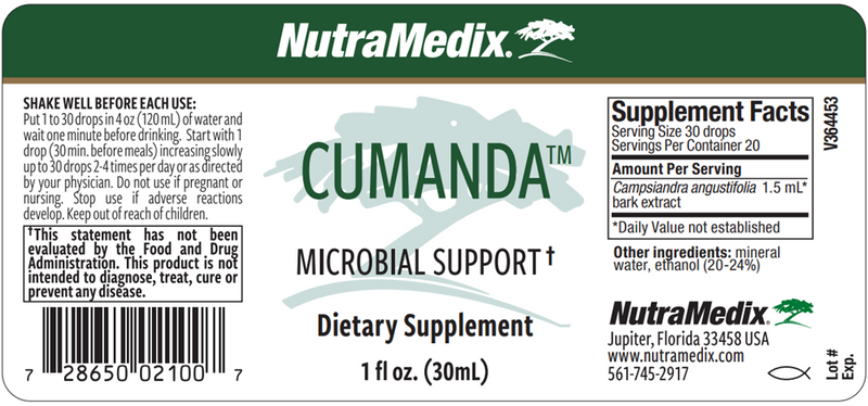Cumanda is a liquid extract made from the bark of the Huacapurana (Campsiandra angustifolia) tree found in the Amazon basin. It has been used by indigenous groups in that region for hundreds of years and may offer microbial support.