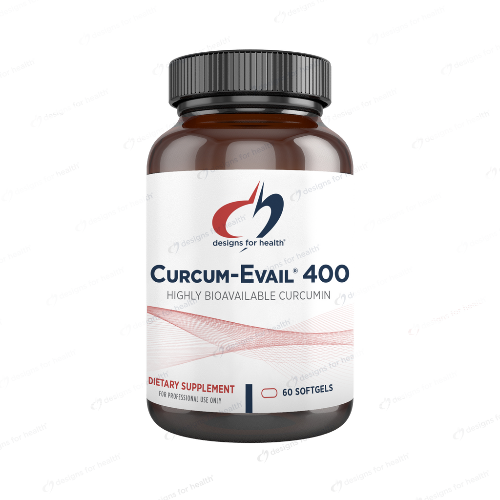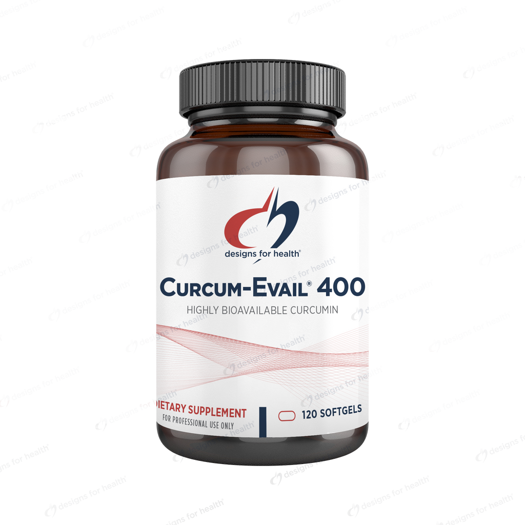 Curcum-Evail® 400 is a highly bioavailable curcuminoid formulation. It contains a unique combination of three bioactive, health-promoting curcuminoids: curcumin, bisdemethoxycurcumin and desmethoxycurcumin, along with turmeric oil. The three curcuminoids are the strongest, most protective, and best-researched constituents of the turmeric root. Curcum-Evail® is manufactured utilizing the Designs for Health Evail™ process, which helps to optimize the absorption rate of the curcuminoids while reducing their absorption time.
