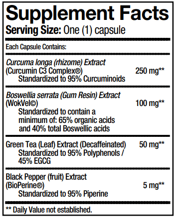 HIGHLY BIOAVAILABLE CURCUMIN WITH BOSWELLIA SERRATA AND GREEN TEA