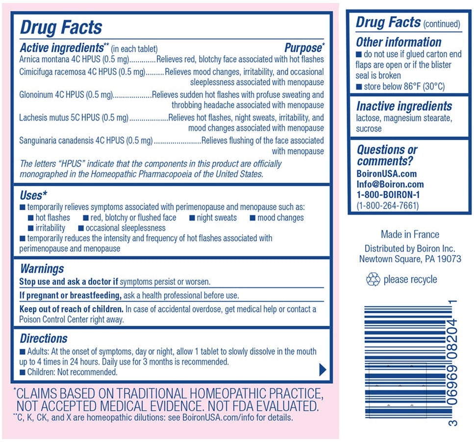 Hot flashes are one of the most common symptoms of menopause, but not the only one. Boiron Cyclease Menopause is designed to address several symptoms of menopause and perimenopause including night sweats, mood changes, occasional sleeplessness, and a red, blotchy, or flushed face associated with hot flashes.* This hormone-free, soy-free homeopathic medicine also significantly reduces the intensity and frequency of hot flashes, as shown in a randomized, double-blind, placebo-controlled clinical study. For best results, daily use for three months is recommended.