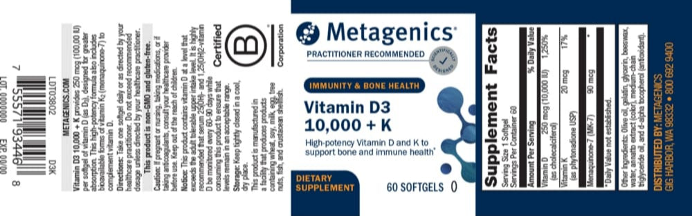 Vitamin D3 10,000 + K features 10,000 IU of high-potency vitamin D3, the easiest form of vitamin D for your body to absorb. It includes bioavailable vitamin K2 to complement vitamin D. Vitamin K2 is essential for metabolizing bone proteins to support bone health.*