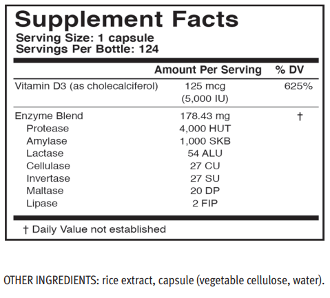 D3-XYM is a proprietary whole food fermented source of natural vitamin D which is easily assimilated. It’s blended in a base of seven digestive enzymes.